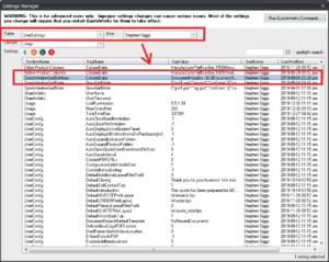 2) Click the ‘Settings Manager’ button and select the “UserSettings” Table and the appropriate User you’d like to modify the Open screen columns for.